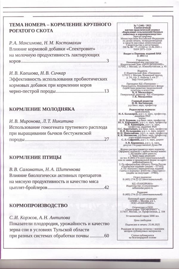 Кормление сельскохозяйственных животных и кормопроизводство 7/2025