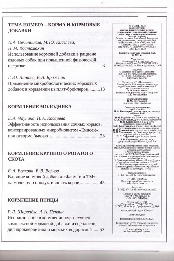 Кормление сельскохозяйственных животных и кормопроизводство 6/2025