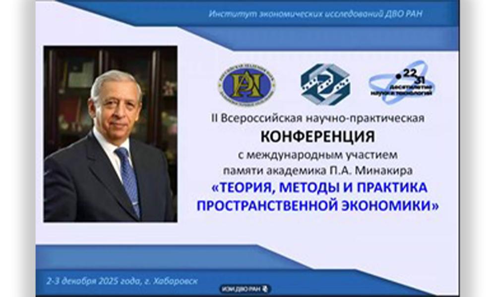 2–3 декабря 2025 г. в Институте экономических исследований ДВО РАН (г. Хабаровск) состоялась II Всероссийская научно-практическая конференция с международным участием памяти академика П.А. Минакира «Теория, методы и практика пространственной экономики». Результаты исследований Вологодского научного центра РАН в рамках выполнения Государственного задания № FMGZ-2025-0013 «Факторы и инструменты обеспечения сбалансированного пространственного развития регионов России в условиях обострения больших вызовов» были представлены в докладе «Развитие малых и средних городов на основе активизации пространственных взаимосвязей» с.н.с. к.э.н. Е.Д. Копытовой и м.н.с. М.А. Лебедевой.