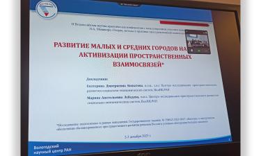 Результаты исследований Вологодского научного центра РАН в рамках выполнения Государственного задания № FMGZ-2025-0013 «Факторы и инструменты обеспечения сбалансированного пространственного развития регионов России в условиях обострения больших вызовов» были представлены в докладе «Развитие малых и средних городов на основе активизации пространственных взаимосвязей» с.н.с. к.э.н. Е.Д. Копытовой м.н.с. М.А. Лебедевой, в котором ученые осветили проблемы преодоления кризиса в пространственном развитии малых и средних городов. Авторы отметили, что существуют различные модели трансформации экономики, а также показали их применимость относительно малых и средних городов Северо-Западного федерального округа в зависимости от имеющихся и потенциально новых факторов размещения производств.