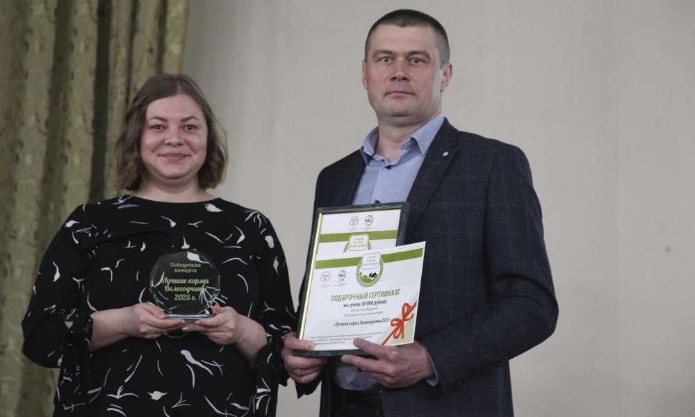 На церемонии награждения победители получили дипломы, ценные призы и знаки отличия «Победитель ежегодного областного конкурса «Лучшие корма Вологодчины».